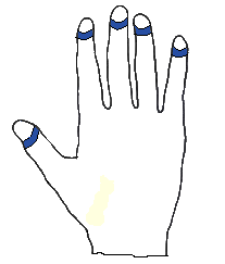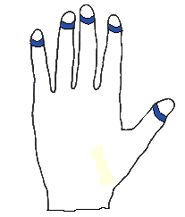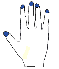 8.Bal kézfej: Alsó, felső állkapocs, fogak, fogidegek, nyálmirigyek |